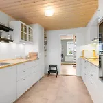 A mini-kitchen at Ae288-Marstal-Kirkevejen-43 Villa is equipped with tea and coffee making facilities, a refrigerator, and an oven.